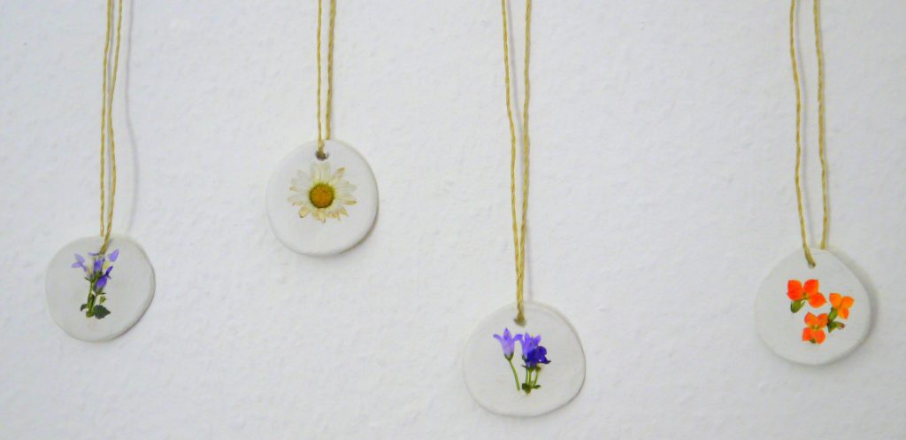 Und fertig sind die sommerlichen Blüten-Anhänger aus Salzteig.