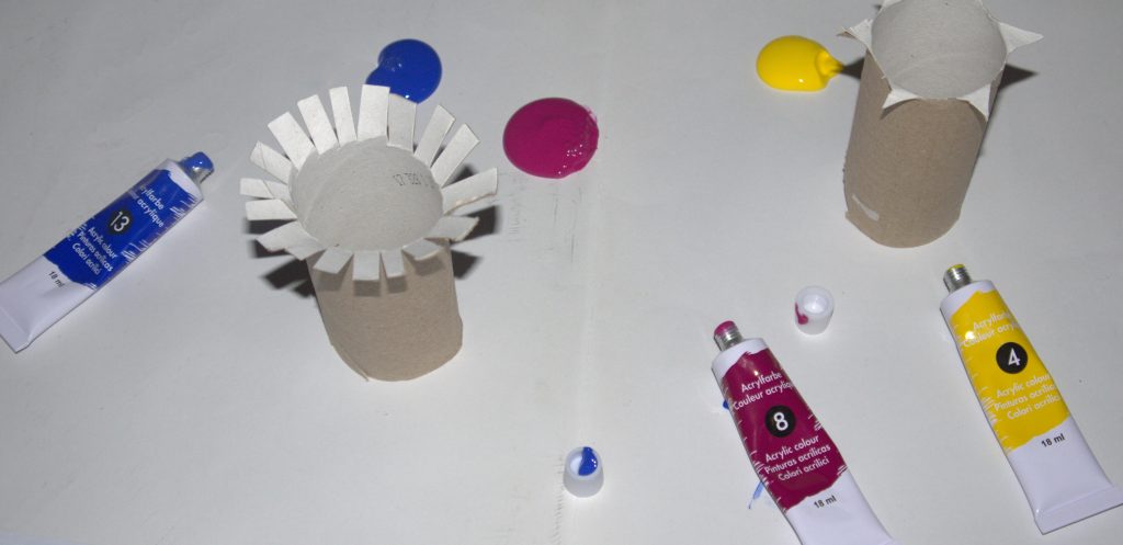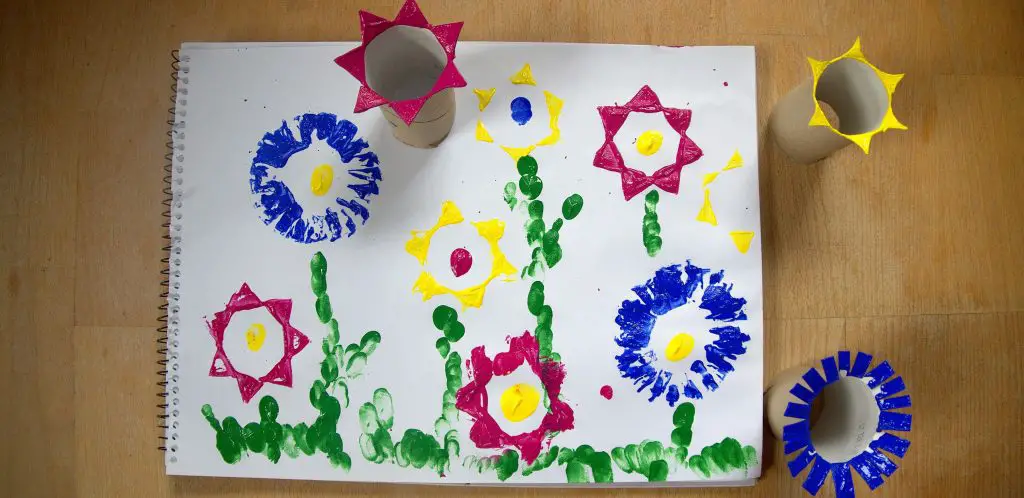 - Basteln, Basteln mit Kindern, Blumenstempel, Klopapierrollen, Recyclen, Rolle, Stempel