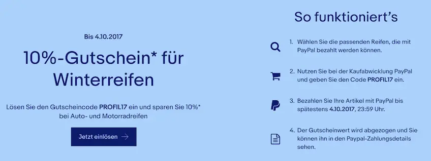 Übrigens, derzeit gerade auch Winterreifen, mit diesem Coupon bekommt ihr bis zum 4.10.2017 10% Rabatt.