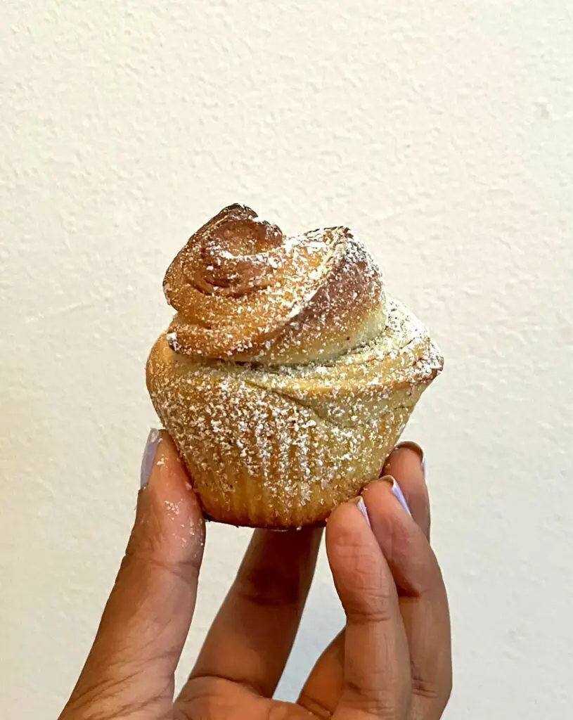 Im letzten Schritt könnt ihr die Cruffins noch mit Puderzucker bestreuen. Dann seid ihr fertig!