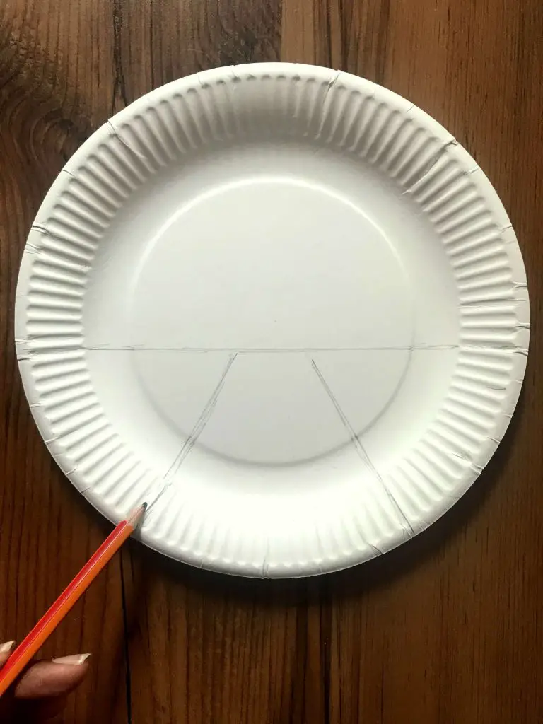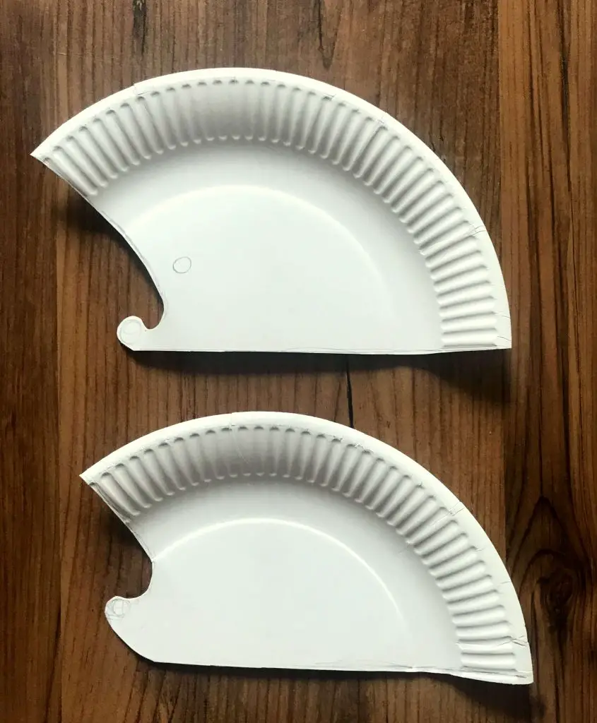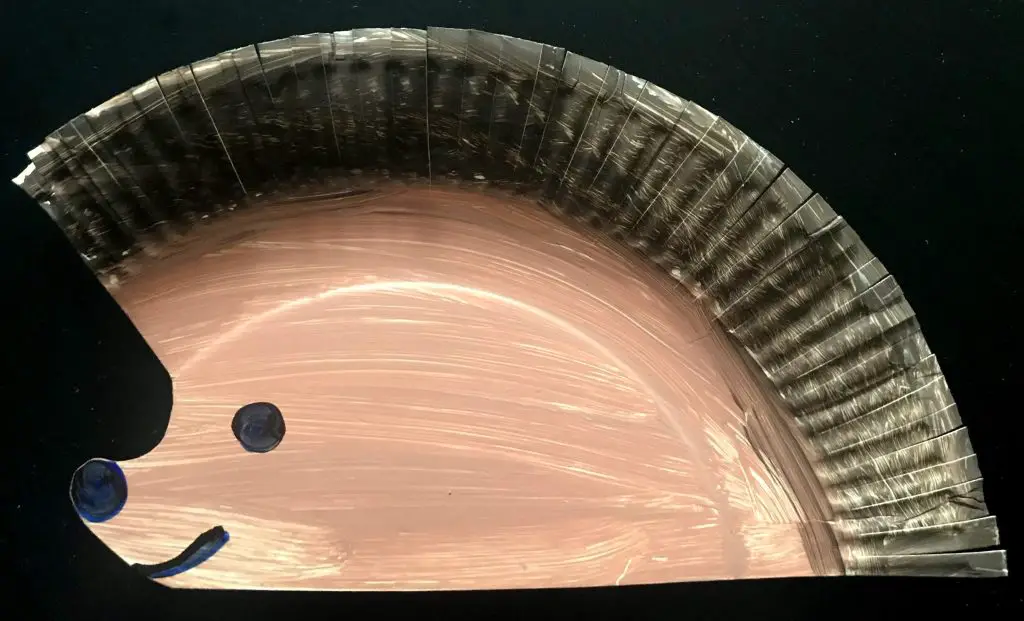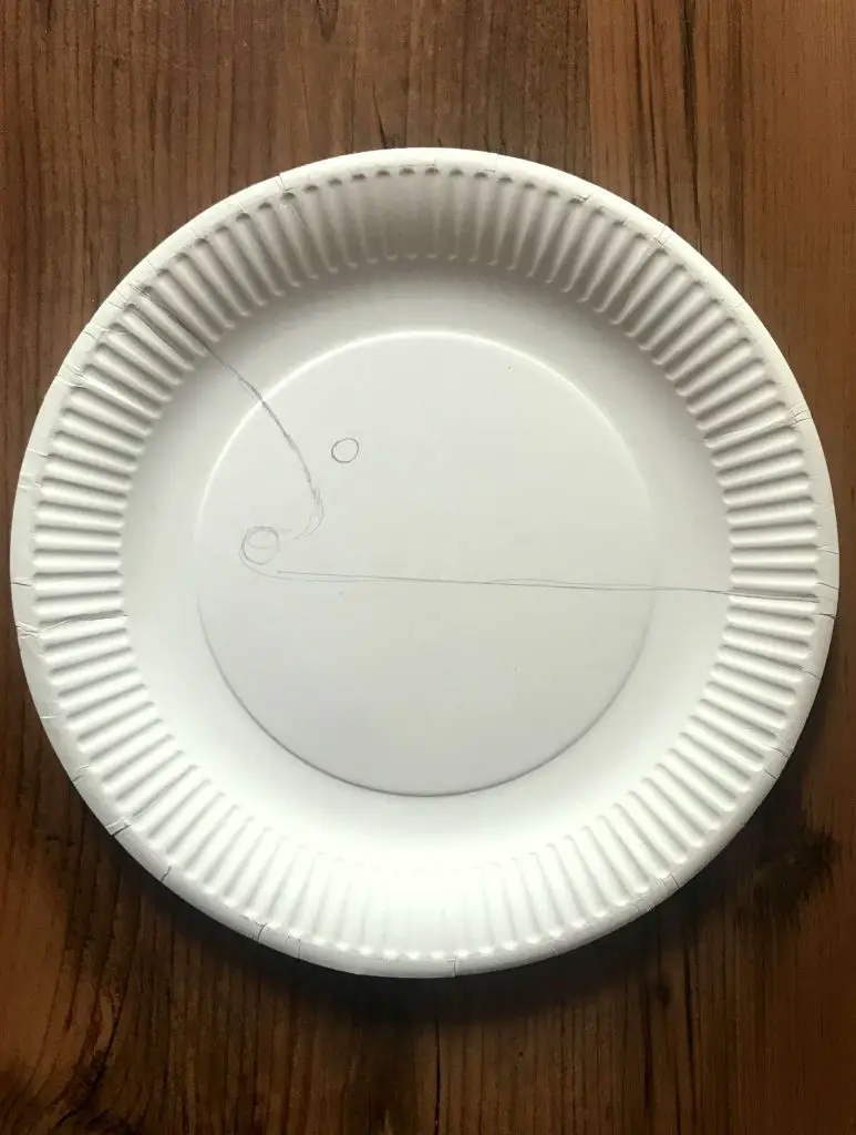 Als Nächstes kommt der Igel, der etwas komplizierter zu sein scheint. Auch diesmal braucht ihr nur eine Hälfte des runden Papptellers.
