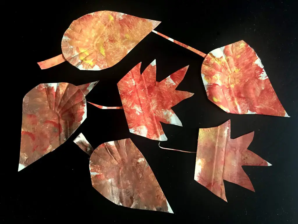 Aus den restlichen Schnipseln wird noch ein Stiel hinzugefügt und anschließend werden die Blätter mit einer Tupf-Technik bemalt. Besonders schön finde ich, wenn verschiedene Farben vermischt werden.