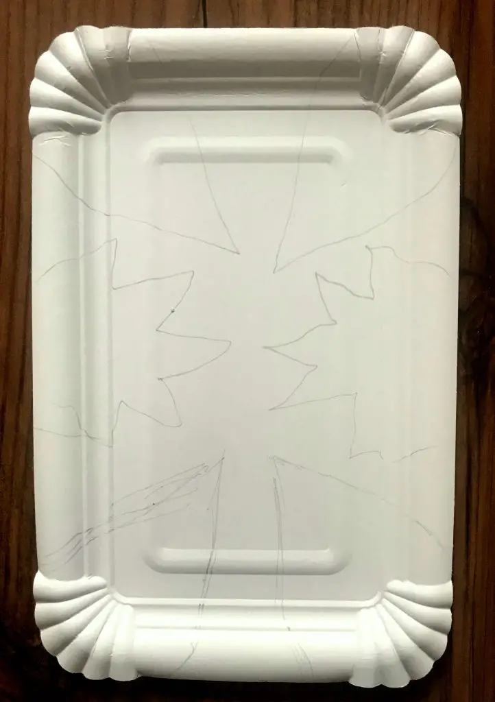 Der Drachen ist am Leichtesten. Obwohl er eigentlich wie ein Parallelogramm geformt ist, habe ich ihn diesmal bei einem Rechteck belassen, weil der Pappteller eben diese Form hat.