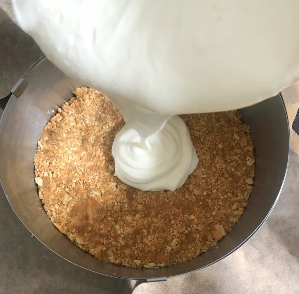 Die Füllung kommt dann in eure Kuchenform und für eine Stunde in den Kühlschrank.
