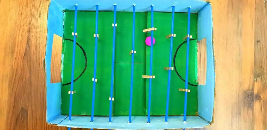 Fußball-Kicker DIY aus einem alten Karton basteln
