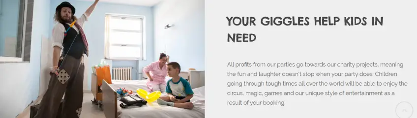 „Wir glauben, dass jeder, Mann, Frau oder Kind das Recht hat, die Sorgen des Lebens beiseite zu legen und für eine Weile zu lächeln. Clown Doktoren für Kinder macht schwierige medizinische oder mündliche Künste durch.“