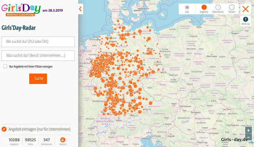 Deutschlandweit gibt es mehr als 10.000 Unternehmen, die mitmachen und an diesem speziellen Tag (immer der 4. Donnerstag im April) den angemeldeten Mädchen Einblicke in ihre tägliche Arbeit geben.