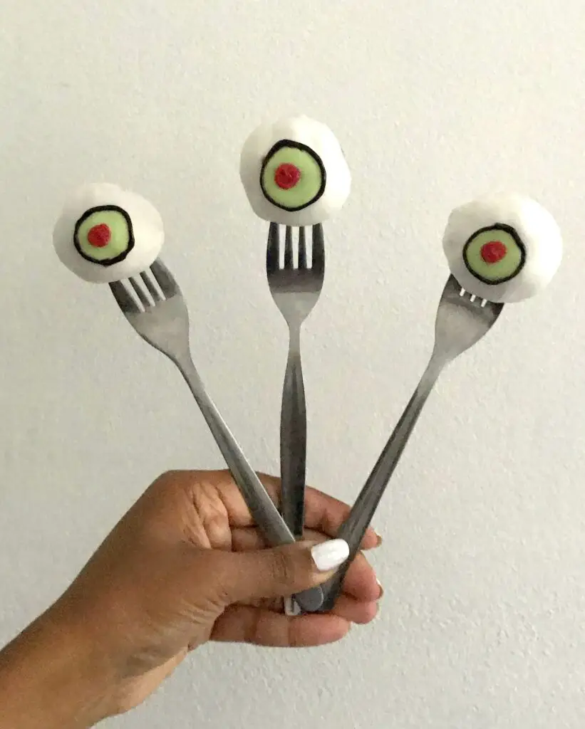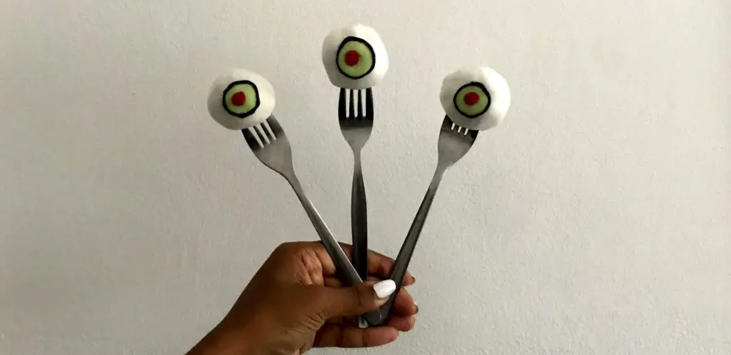 Da sie schon servierfertig auf einer Gabel thronen, könnt ihr einfach reinbeißen! Auch wenn Auge bei den meisten nicht zu ihrem Lieblingsessen zählt, sind diese durchaus süß und haben es in sich!