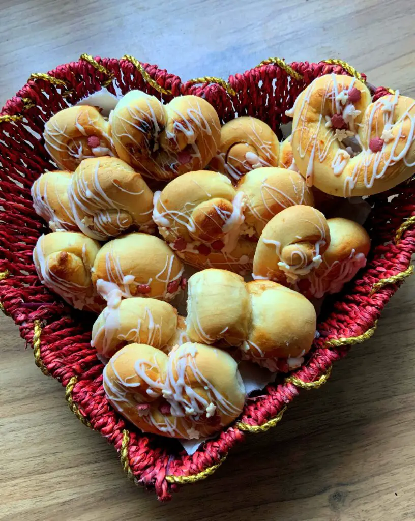 Falls ihr noch auf der Suche nach einem Valentinssnack seid, habe ich hier ein paar leckere Hefeherzen zum Valentinstag für euch! Natürlich passen sie auch zum Muttertag – oder einfach so, für eine Mini-Liebeserklärung im Alltag.