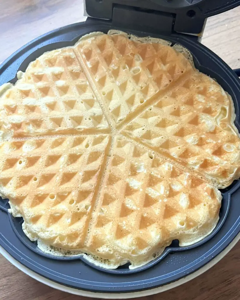 Backt die Waffeln im Waffeleisen, bis sie goldbraun und knusprig sind.🧇