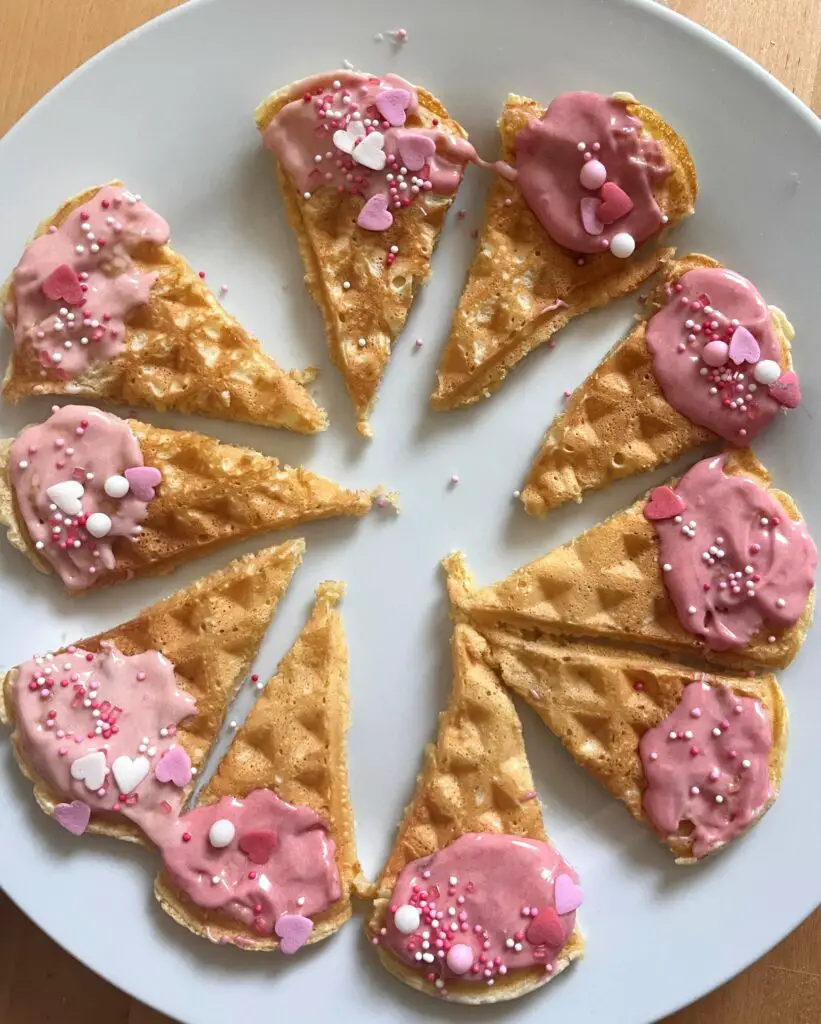 Ein bisschen Kitsch gefällig? Rosa Waffeln zum Valtentinstag!