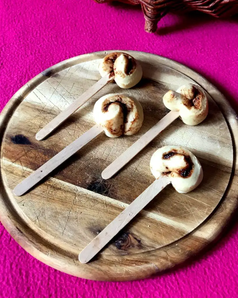 Ich liebe es, zu picknicken, und denke mir immer gern neue Snacks aus, um mehr Variationen einzubringen. Meine Pflaumenschnecken am Stiel sind ein Äquivalent zu den berühmten Cake Pops, nur eben mit Hefeteig!