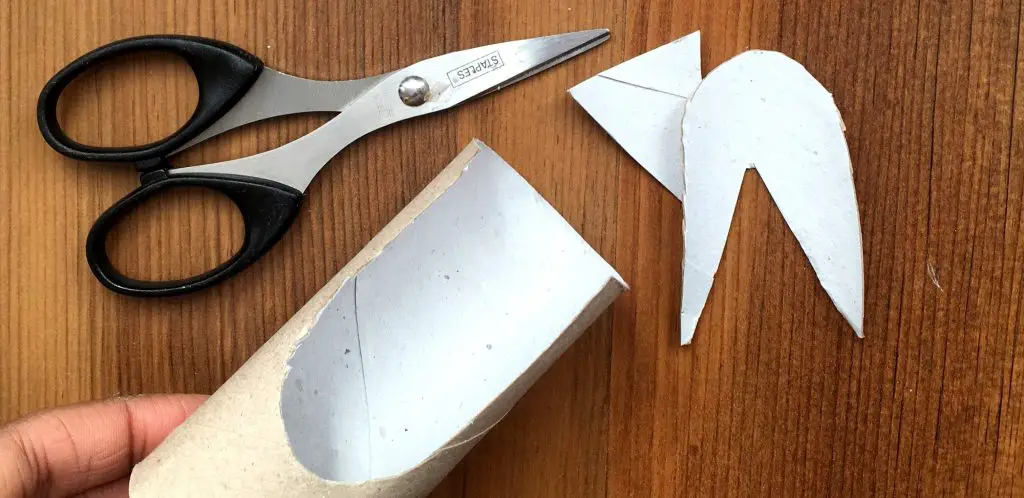 Für den Kopf schneidet ihr ein langes U in die Klopapierrolle ein. Es soll nicht zu lang werden, aber die Küchenrolle muss auf jeden Fall dazwischen passen. Den „Kopf“ könnt ihr dann gleich gut festsetzen und am besten mit Bastelkleber befestigen. Drückt einen Moment darauf, damit es wirklich fest sitzt.
