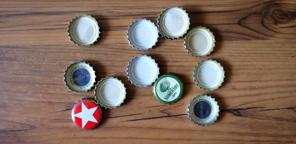 Zunächst braucht ihr ein paar Flaschendeckel. Ich habe mit einfach ein paar übrig gebliebene aus einer Geburtstagsfeier genommen!