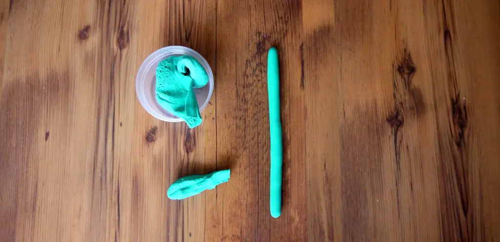 Zunächst nehmt ihr die Fimo Knete und knetet sie zu einem langen runden Stil. Je nachdem, wie gro0 euer Kaktur werden soll, formt ihr den Stil mit der richtigen Länge. Achtet hierbei darauf, dass die Dicke trotzdem einen Ring oder ähnliches durchstecken lässt.