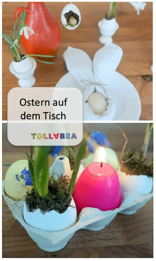 Davon ein paar in einen Eierkarton hinein gesetzt, eine Eikerze dazu. Fertig ist der erste Teil des Tischschmuckes.