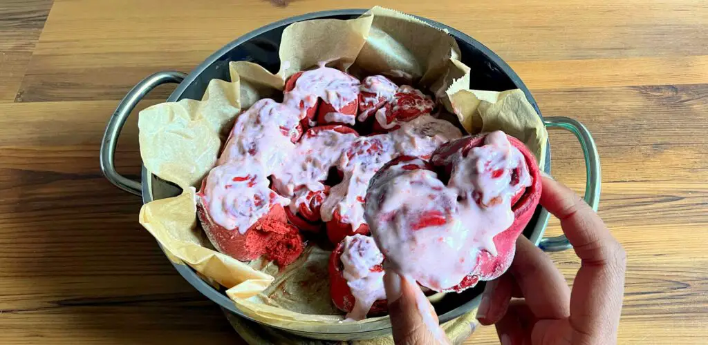 Und so gehen die veganen Red Velvet Marmeladenschnecken zum Muttertag: