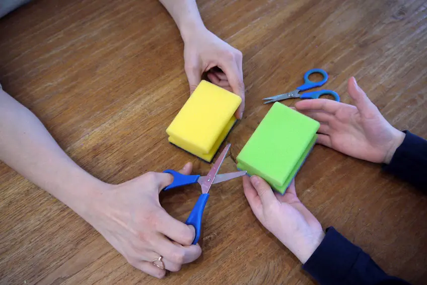 Alles, was ihr braucht sind Schwämme und Bastelscheren.