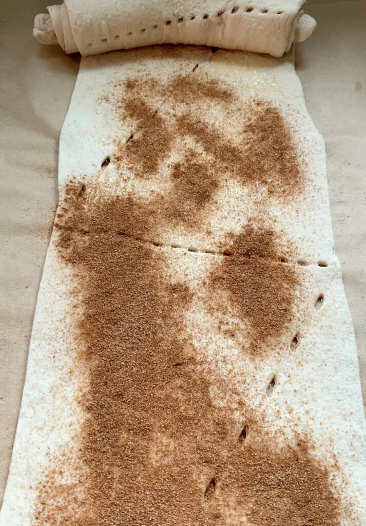 Schritt 3: Bestreut denTeig mit Zimt und Zucker.