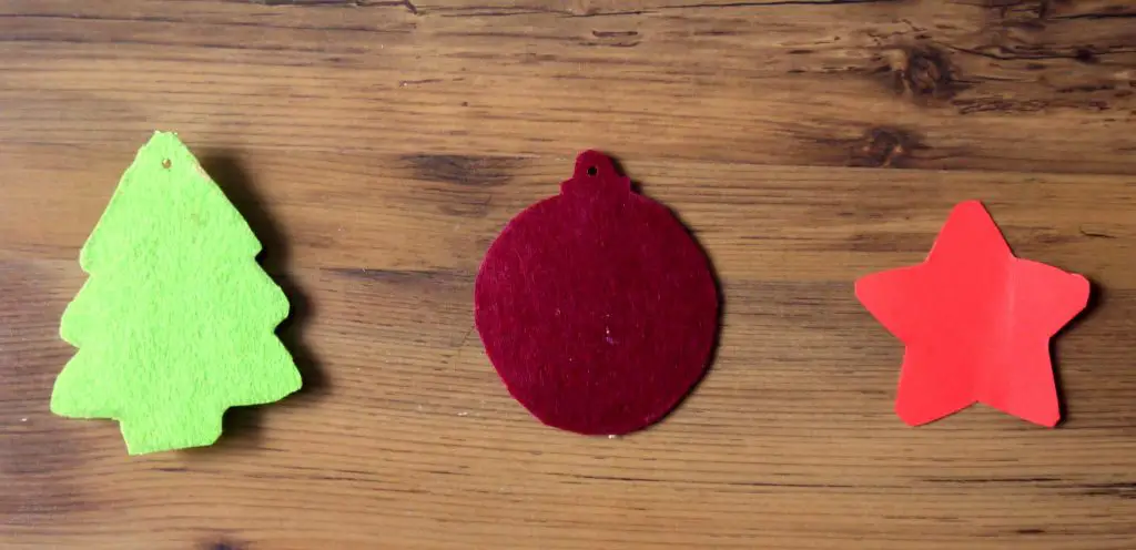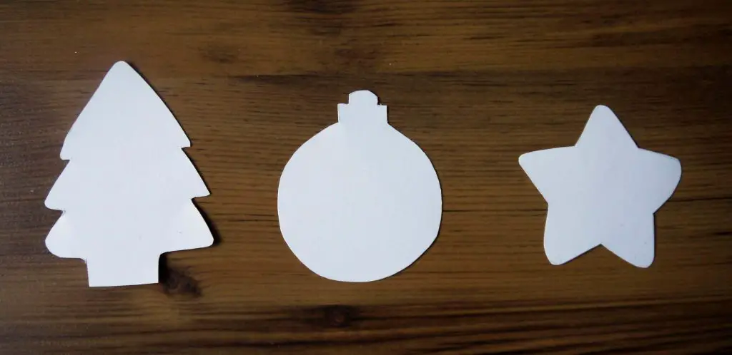 Zunächst braucht ihr Schablonen. Ihr könnt euch nach diesen hier richten und sie euch ausrucken, wenn ihr wollt. Ich habe einen Stern, eine Tanne und eine Christbaumkugel genommen.