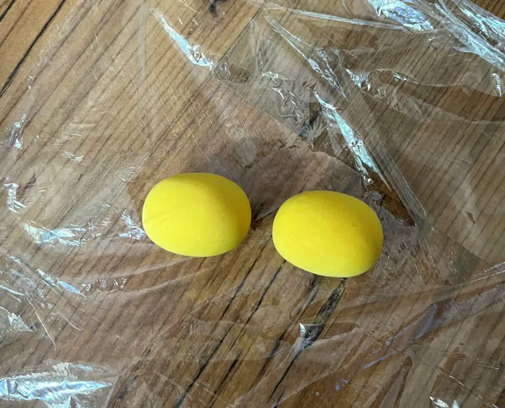Schnappt euch etwas gelbe Knete (Durchmesser ca. 2 cm) und formt ein Oval daraus.
