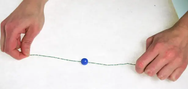 Nehmt jetzt ein ca. 20 cm langes Stück von eurem Draht und fädelt damit eine hübsche Perle auf. Die Perle sollte genau in der Mitte liegen. Biegt beide Drahtenden zusammen und dreht die Perle einmal um ihre eigene Achse, damit sie nicht mehr verrutschen kann.