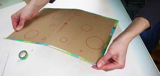 Damit die Ränder des Buches schöner aussehen, könnt ihr sie mit buntem Washi-Tape verzieren – dann sind die Kanten auch nicht mehr so scharf. Eventuell müsst ihr an den Ecken überstehendes Klebeband mit einer Schere ein wenig stutzen.